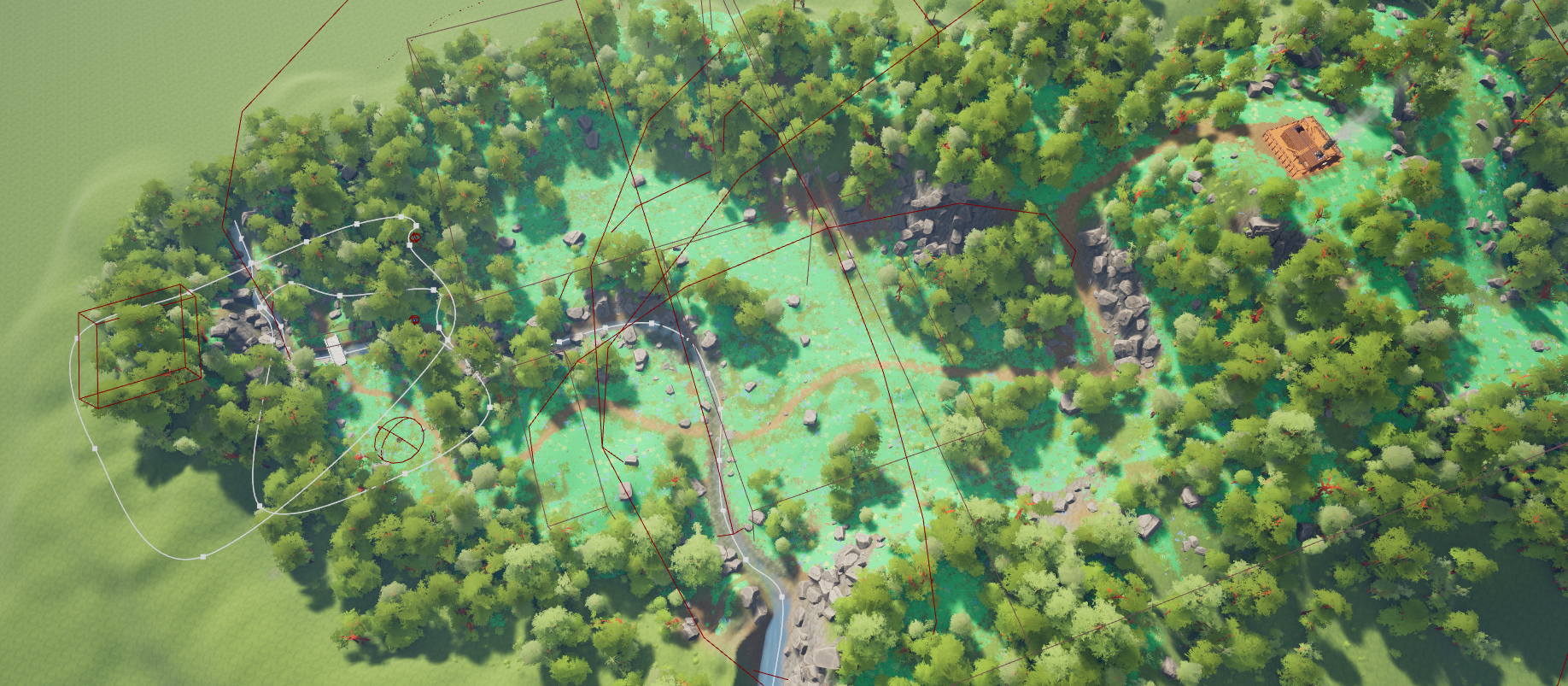 This project is the largest open world project I have taken on, and as such, level and environment design is one of my top priorities. Since the game will take advantage of the openness with little in the way of traditional game objectives, it is imperative that the map is interesting enough for players to want to get out and explore it organically. One of the most crucial parts of the level creation process is sightline consideration, and that is something I am carefully considering throughout this project. Sightline control can be extremely effective at making a level seem larger and more exciting, and can be used to hide certain sights from view until just the right moment, creating an organic sense of discovery that can only be achieved in this medium.
